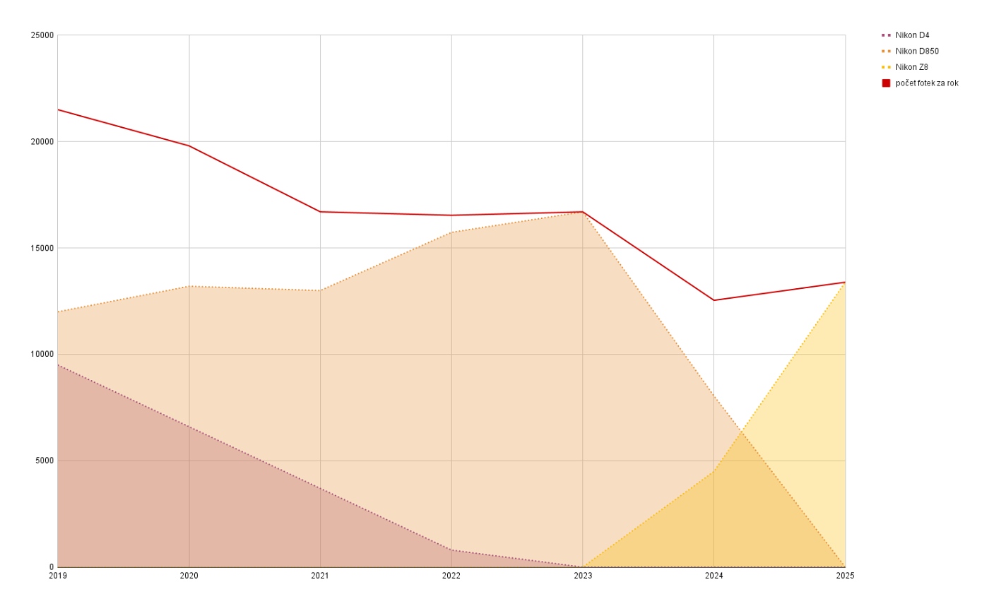 Ani letos nevynechám tradiční statistiku: za rok 2025 jsem nafotil 13390 záběrů, tedy o něco víc, než loni.